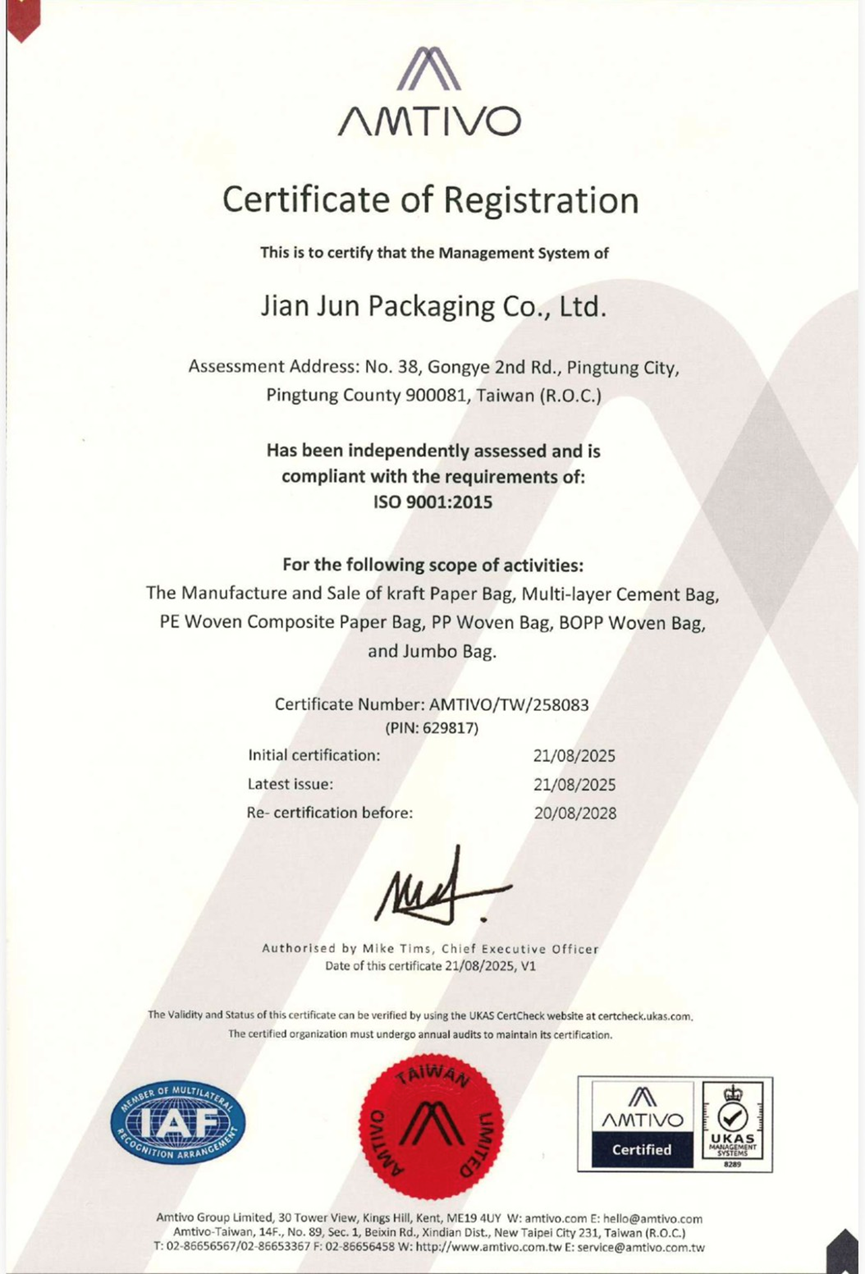 民國109年通過ISO 9001:2015國際品質認證。